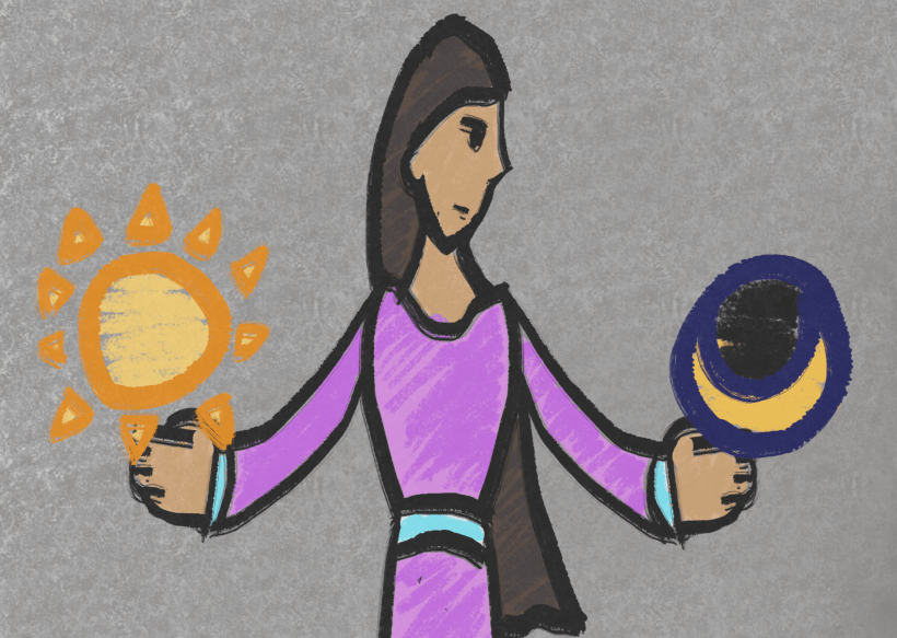 "Held to be twin sisters, though not known to be the children of any other Realmgardian deity, Skana and Skata are the goddess of the Sun and daytime (Skana) and the Moon and nighttime (Skata)."